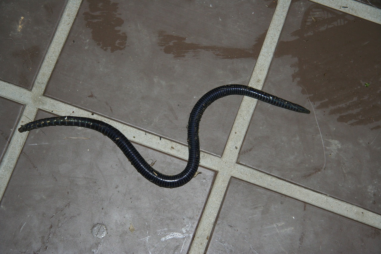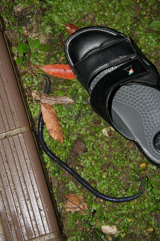 巨大ミミズが家の庭に出てきた。 くそデカイな。 でもこの画像だけだとわかりにくいかもしれないから。スリッパと一緒のやつもUPしておきますわ。